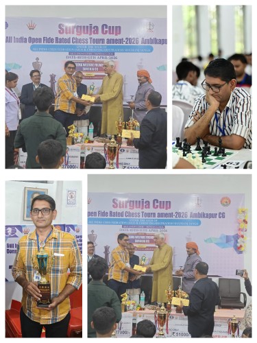 सरगुजा ✍️जितेन्द्र गुप्ता आल इंडिया ओपन फिडे रेटेड चेस टुन्नामेन्ट 2026 अम्बिकापुर छत्तीसगढ़ का शुभारंभ 300 से ज्यादा शतरंज के खिलाडी इस टुन्नामेन्ट मे भाग