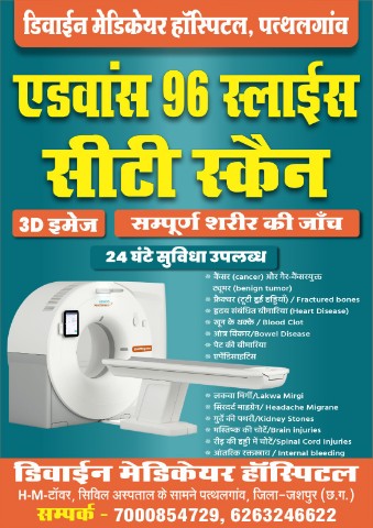 डिवाइन मेडिकेयर हॉस्पिटल में आज होगा एडवॉस मल्टीस्लाईस सीटी स्कैन का शुभारंभ श्रीमती गोमती साय विधायक पत्थलगांव एवं उपाध्यक्ष, सरगुजा विकास प्राधिकरण की उपाध्यक्ष करेंगी